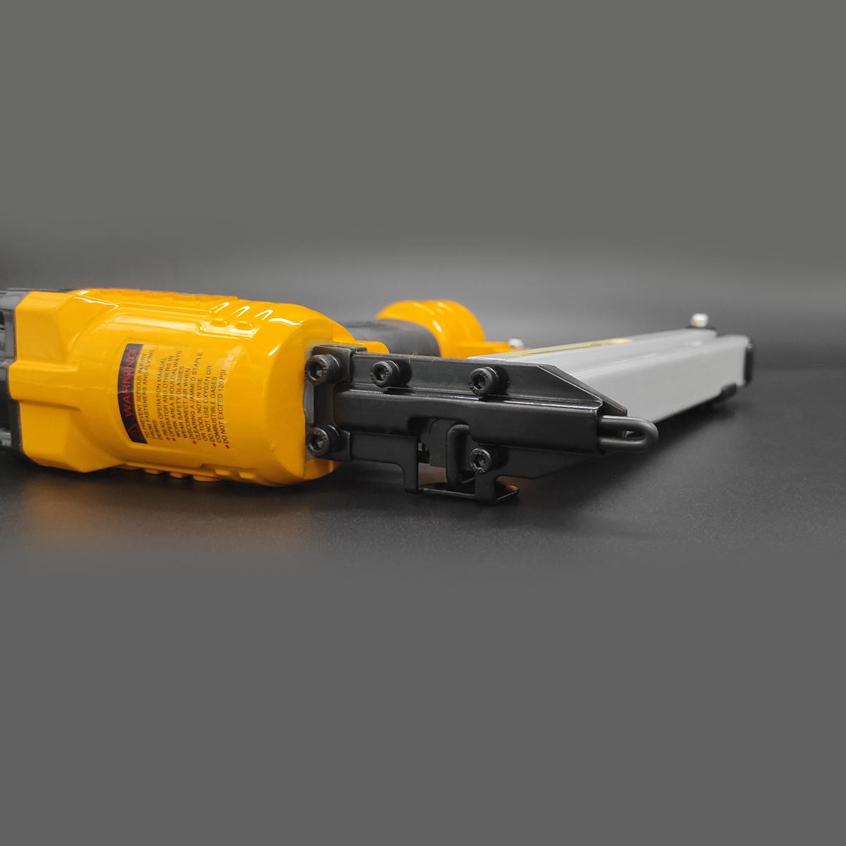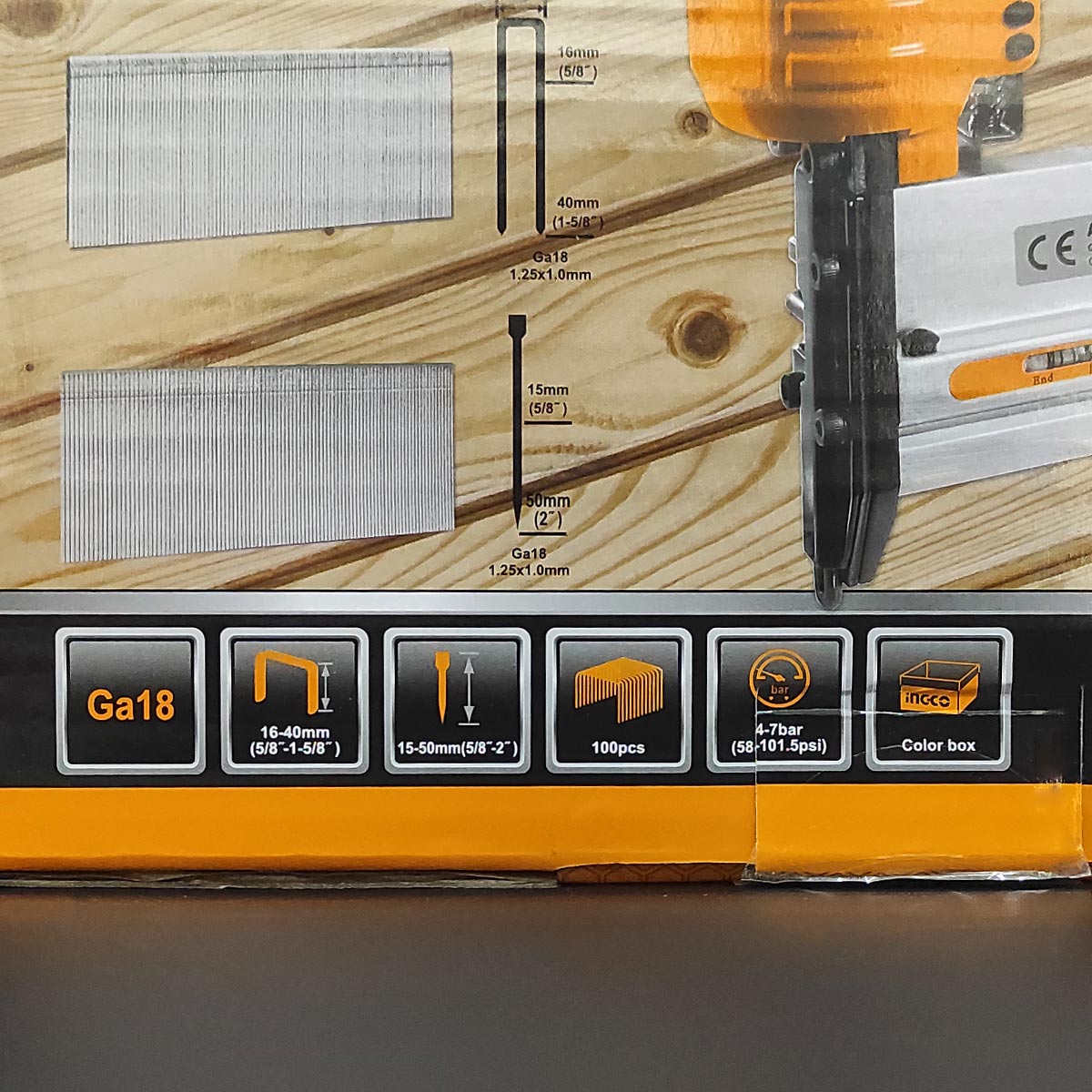⚙️ Χαρακτηριστικά: Πίεση λειτουργίας 4-7bar (75-100psi), Υποδοχή αέρα 1/4″, Χωρητικότητα γεμιστήρα 100 τεμ., Μέγεθος καρφιού 15-50mm Φ1.0mm, Μέγεθος διχάλων 16-40mm, Φάρδος διχάλων 5.7mm, Κατάλληλο για ξυλουργικές & ταπετσαρίες.