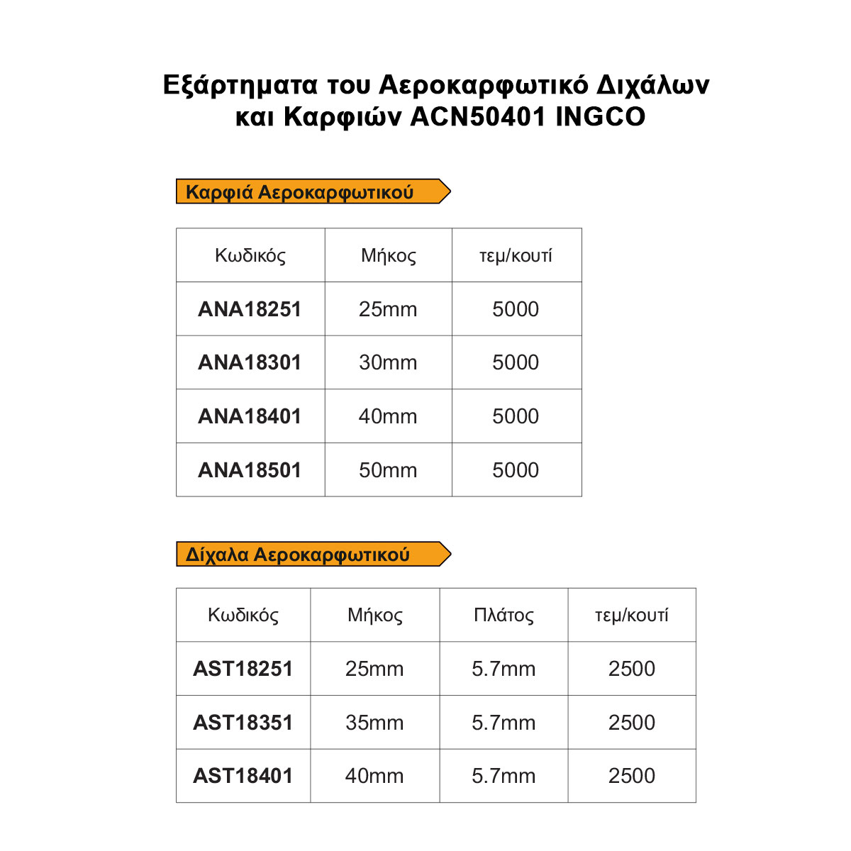 Αεροκαρφωτικό Διχάλων & Καρφιών 4-7bar 15-50mm με Δώρα ACN50401