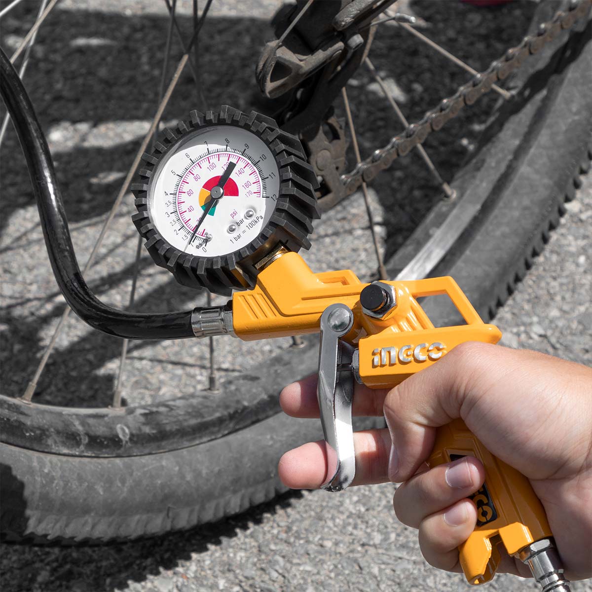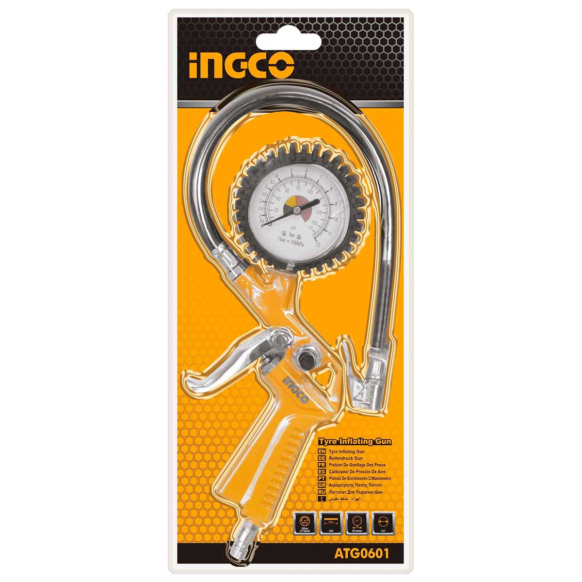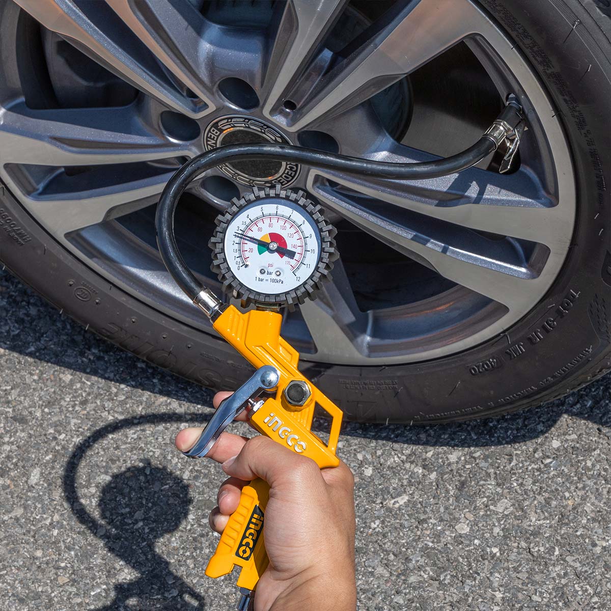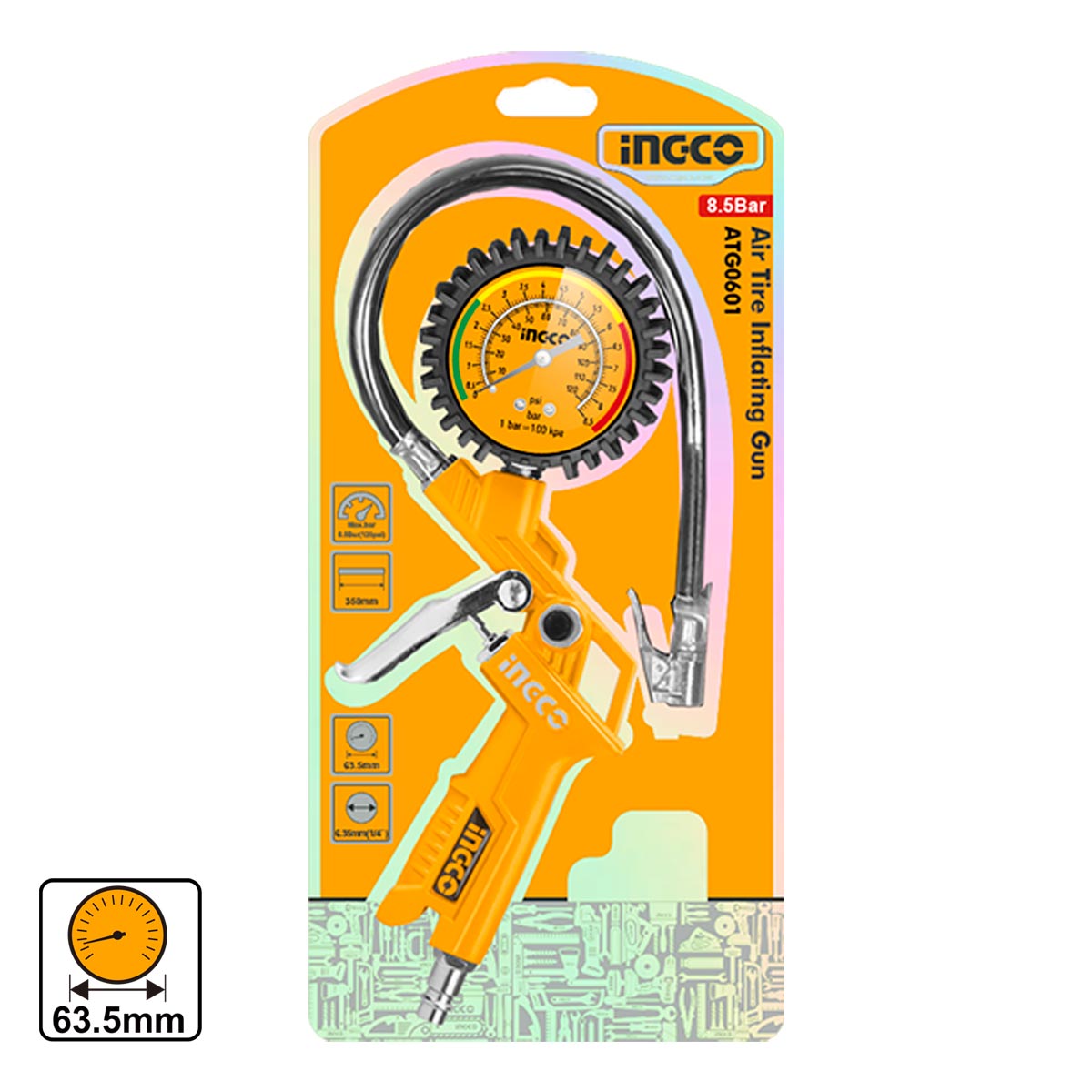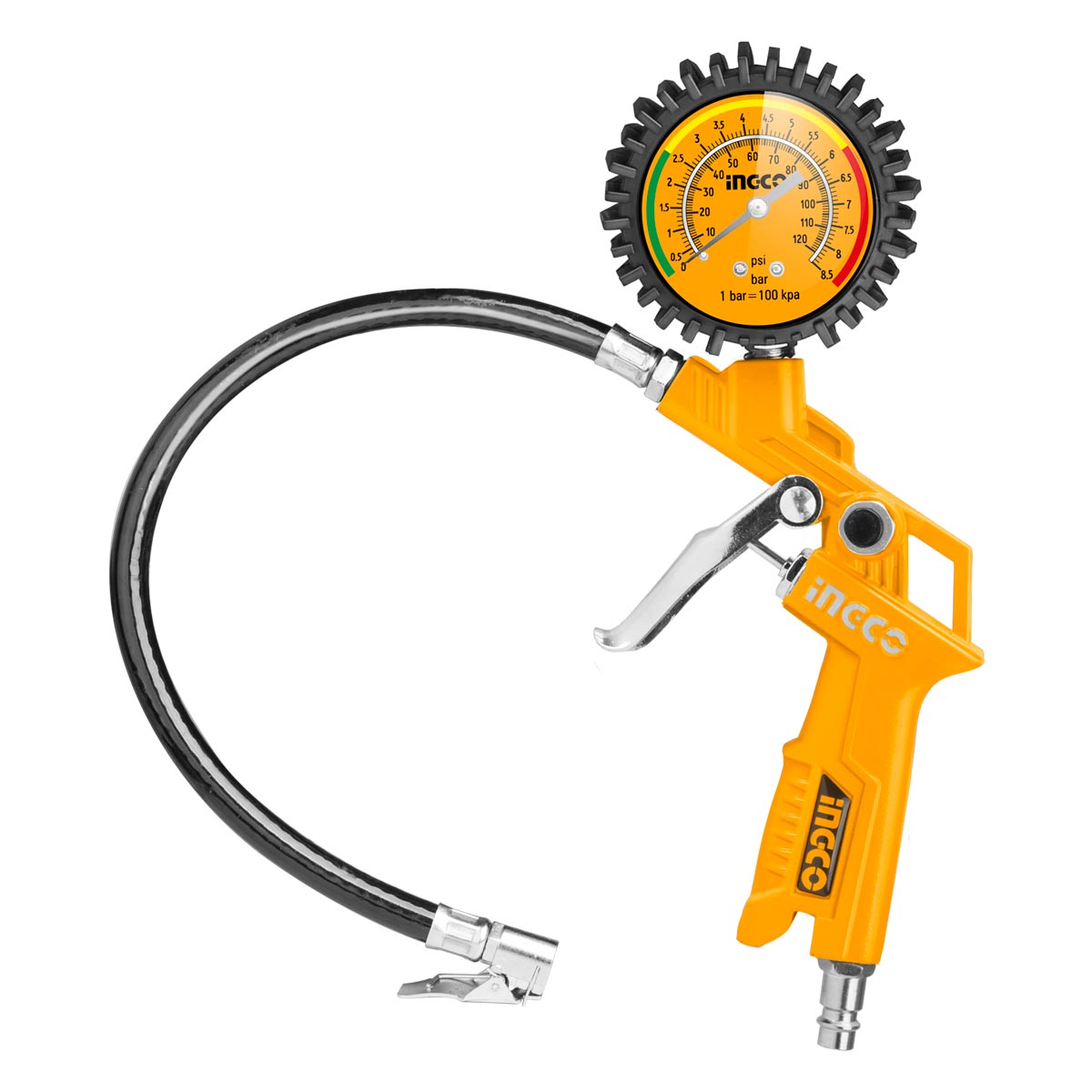 Αερομετρητής πιστόλι βαρέως τύπου, ιδανικός για μέτρηση και ρύθμιση πίεσης ελαστικών με ακρίβεια και αξιοπιστία. Διαθέτει πιστοποιημένο μανόμετρο Φ63mm με ένδειξη σε bar και psi, προσφέροντας εύκολη ανάγνωση. Κατάλληλος για επαγγελματική και καθημερινή χρήση σε συνεργεία και οχήματα.