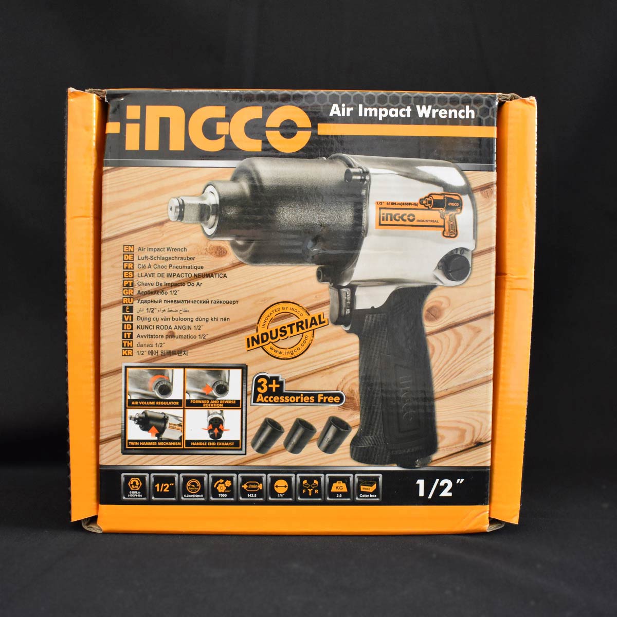 📦 Περιεχόμενα Συσκευασίας: Αερόκλειδο 1/2″, 30ml λάδι μηχανής, 1 τεμ. κλειδί άλλεν, 3 τεμ. καρυδάκια 17mm, 19mm, 21mm, 4 τεμ. αεροσυνδέσμους όλων των τύπων.