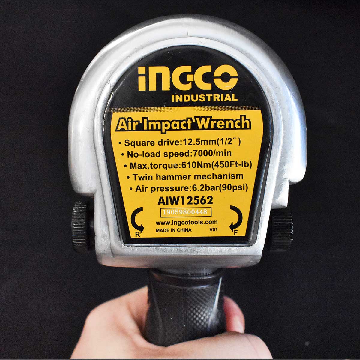 ⚙️ Χαρακτηριστικά: Ταχύτητα χωρίς φορτίο 7000rpm, Ροπή 610Nm, Υποδοχή καρέ 1/2″, Κατανάλωση αέρα 142.5 Lit/min, Υποδοχή αέρα 1/4″, Διάμετρος λάστιχου 3/8″, Πίεση λειτουργίας 6.3bar (90psi), Διπλός μηχανισμός κρούσης.
