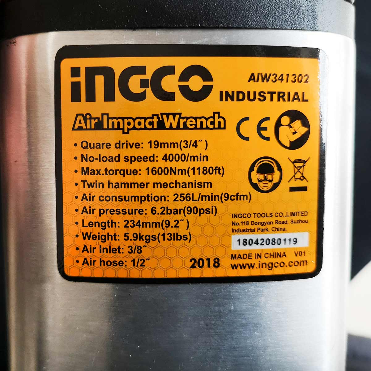 ⚙️ Χαρακτηριστικά: Ταχύτητα χωρίς φορτίο 4000rpm, Ροπή 1600Nm, Υποδοχή καρέ 3/4″, Κατανάλωση αέρα 256 Lit/min, Υποδοχή αέρα 3/8″, Διάμετρος λάστιχου 1/2″, Πίεση λειτουργίας 6.3bar (90psi), Διπλός μηχανισμός κρούσης, Πλαϊνή λαβή για καλύτερο έλεγχο.