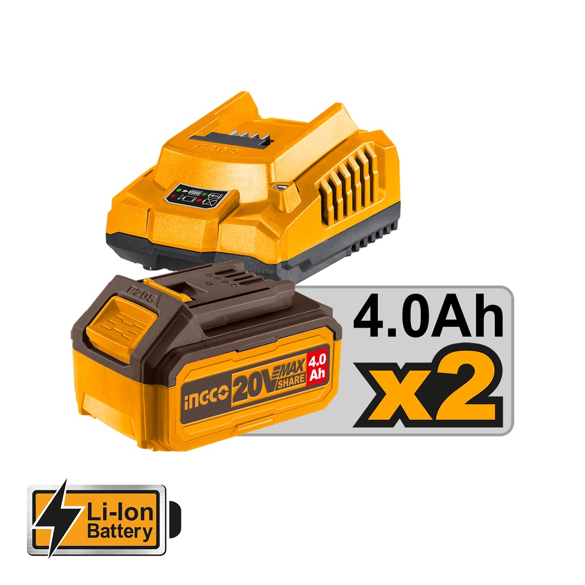 Φορτιστής 1 ώρας, 2 μπαταρίες 20V 4.0Ah Li-Ion, λάμα Oregon, αλυσίδα Oregon, προστατευτικό κάλυμμα λάμας