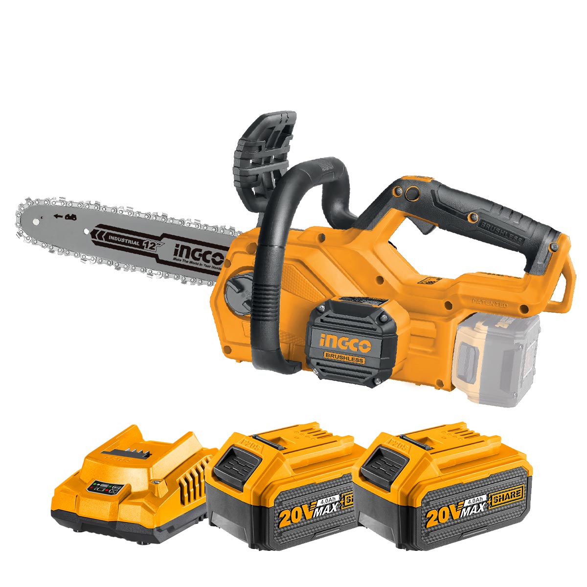 Τάση 20V Li-Ion, μήκος λάμας 12″ / 300mm, ταχύτητα αλυσίδας 7.9 m/s, brushless motor χωρίς καρβουνάκια, τέντωμα αλυσίδας χωρίς εργαλεία, αυτόματη αντλία λίπανσης, χωρητικότητα δεξαμενής λαδιού 130ml, διακόπτης ασφαλείας, χειροκίνητο φρένο αλυσίδας, LED ένδειξη κατάστασης μπαταρίας📦 Περιεχόμενα συσκευασίας