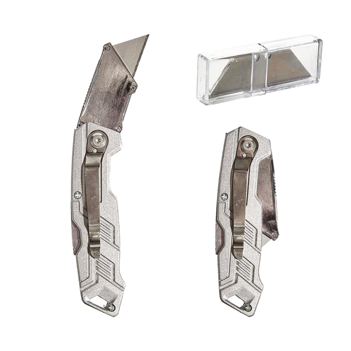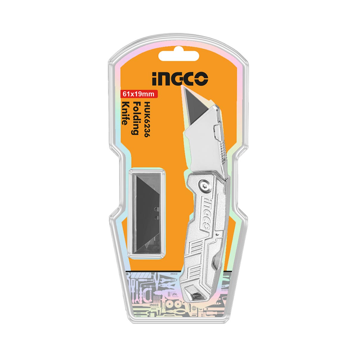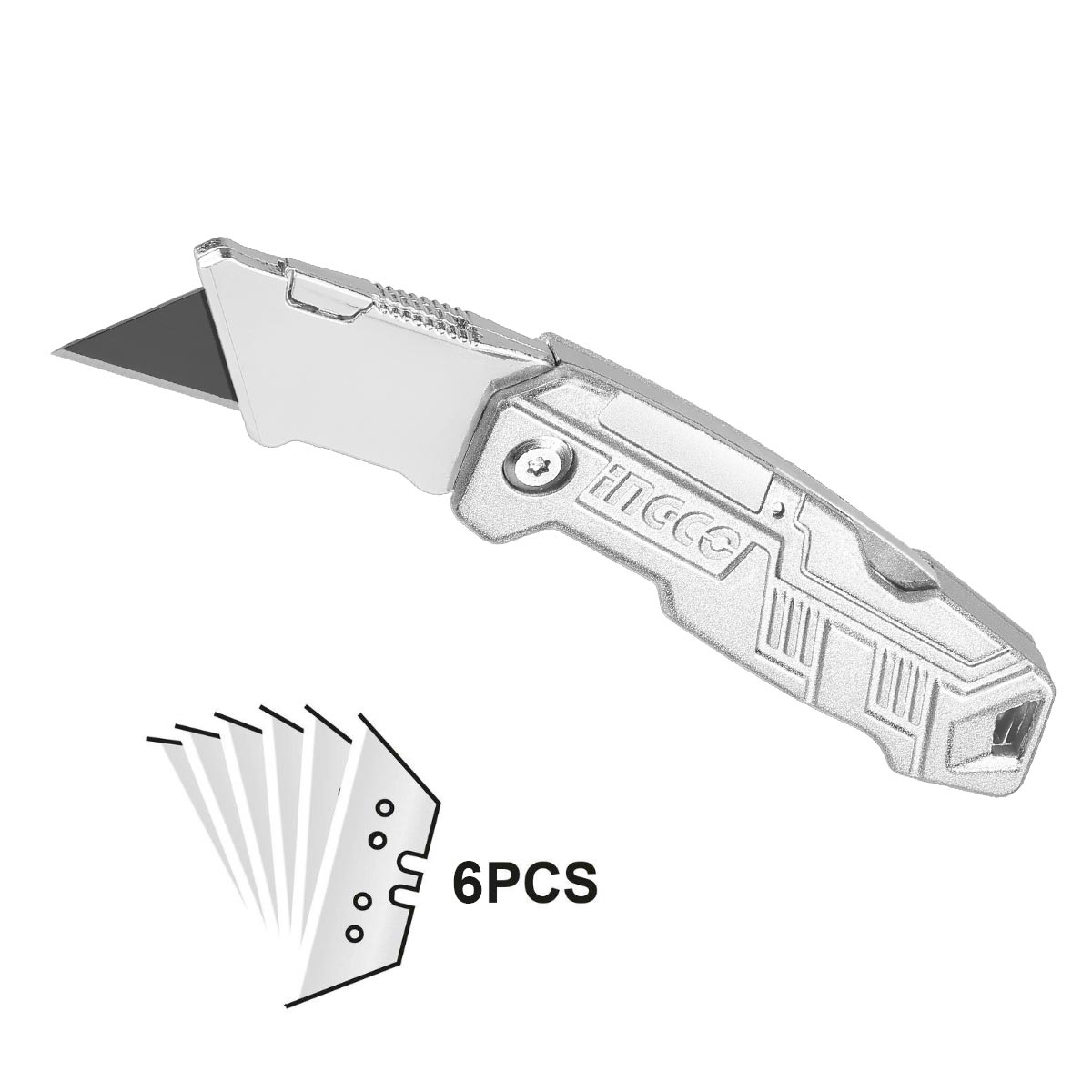 Η λαβή από κράμα αλουμινίου εξασφαλίζει ανθεκτικότητα και σταθερό κράτημα, ενώ ο αναδιπλούμενος μηχανισμός προσφέρει ασφάλεια και ευκολία στη μεταφορά. Το σετ συνοδεύεται από 6 ανταλλακτικές λάμες (HUKB61001) για μεγαλύτερη διάρκεια χρήσης.