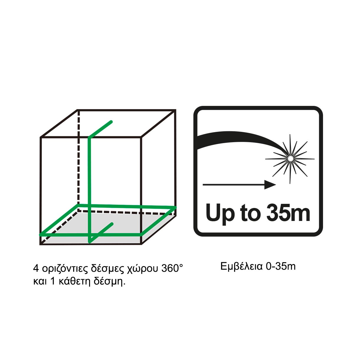 Το αυτοαλφαδιαζόμενο laser σταυρού με 5 πράσινες δέσμες προσφέρει γρήγορη και ακριβή ευθυγράμμιση σε πλήθος εργασιών. Διαθέτει τέσσερις οριζόντιες δέσμες 360° και μία κάθετη, με εμβέλεια έως 35m και υψηλή ακρίβεια μέτρησης. Ο ισχυρός ενσωματωμένος μαγνήτης, η δυνατότητα τοποθέτησης σε τρίποδο και η προστασία IP54 το καθιστούν αξιόπιστο εργαλείο για εργοτάξια και εργασίες εσωτερικού χώρου.
