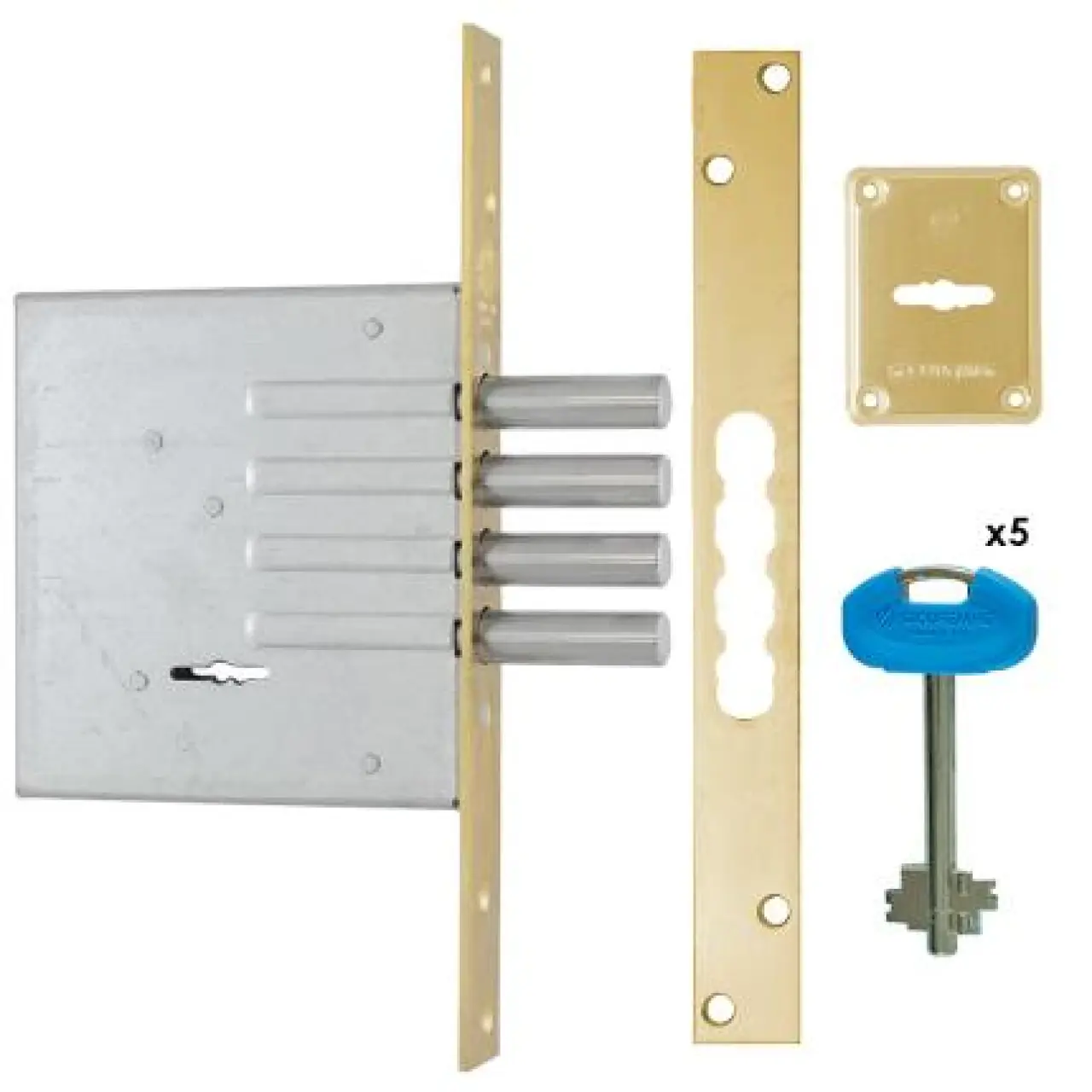 Η κλειδαριά ασφαλείας τρίαινα Securemme 2020 τοποθετείται πάνω από την κύρια κλειδαριά της πόρτας και προσφέρει επιπλέον προστασία. Διαθέτει τέσσερις επινικελωμένους ατσάλινους πύρρους και μηχανισμό τεσσάρων στροφών, εξασφαλίζοντας στιβαρό και αξιόπιστο κλείδωμα για ξύλινες πόρτες.