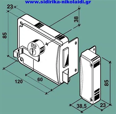 Κουτιάστη κλειδαριά πόρτας με κύλινδρο και κλειδί, βαριάς κατασκευής, για δεξιά ή αριστερή τοποθέτηση.