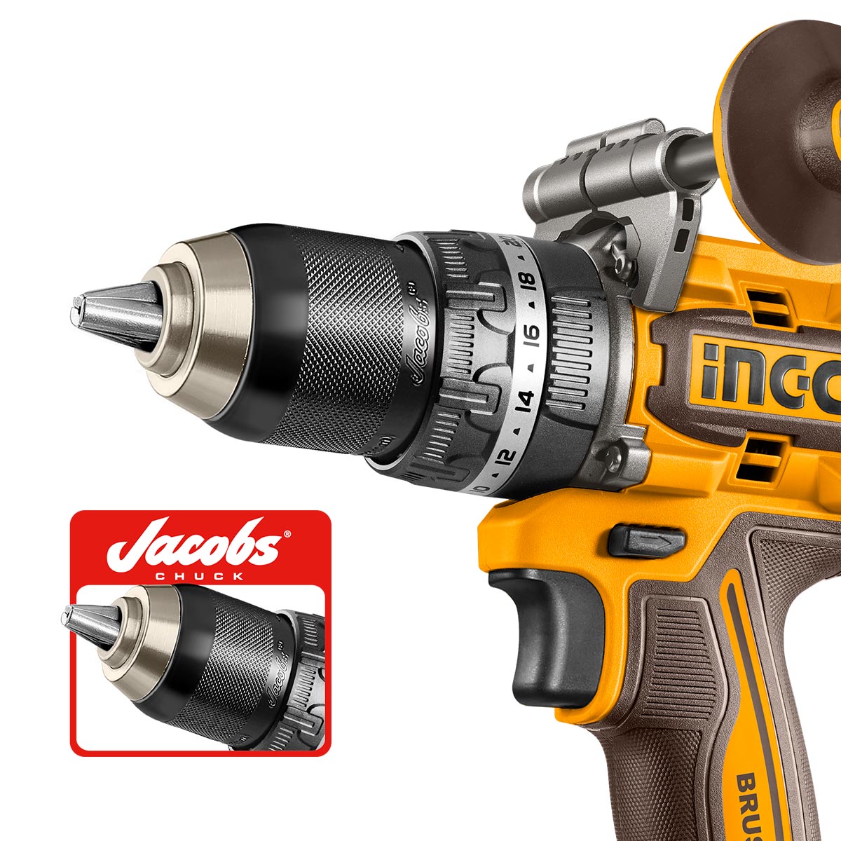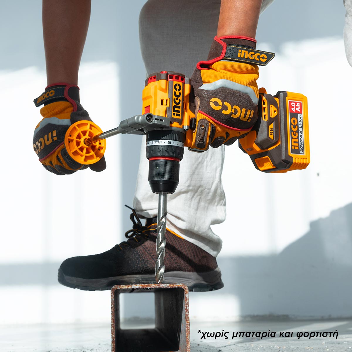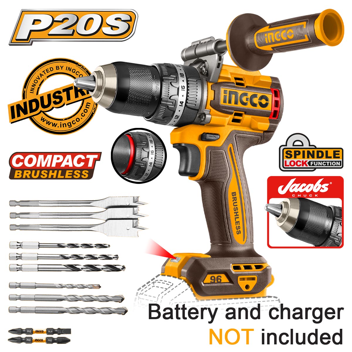 Τύπος κρουστικό δραπανοκατσάβιδο compact μπαταρίας, τάση 20V Li-Ion, έκδοση SOLO χωρίς μπαταρία και φορτιστή, ταχύτητα χωρίς φορτίο 0–500 / 0–2000 rpm, ισχύς 1100W, κρούσεις έως 30.000 bpm, ροπή 96Nm, ρυθμίσεις ροπής 22+1+1, αυτόματο μεταλλικό τσοκ Jacobs έως 13mm, λειτουργία κλειδώματος άξονα, brushless motor χωρίς καρβουνάκια, LED λάμπα εργασίας, δυνατότητα τρυπήματος σε μπετόν έως 13mm, ατσάλι έως 13mm και ξύλο έως 55mm, τσοκ Jacobs αμερικανικής κατασκευής υψηλής ακρίβειας και αντοχής