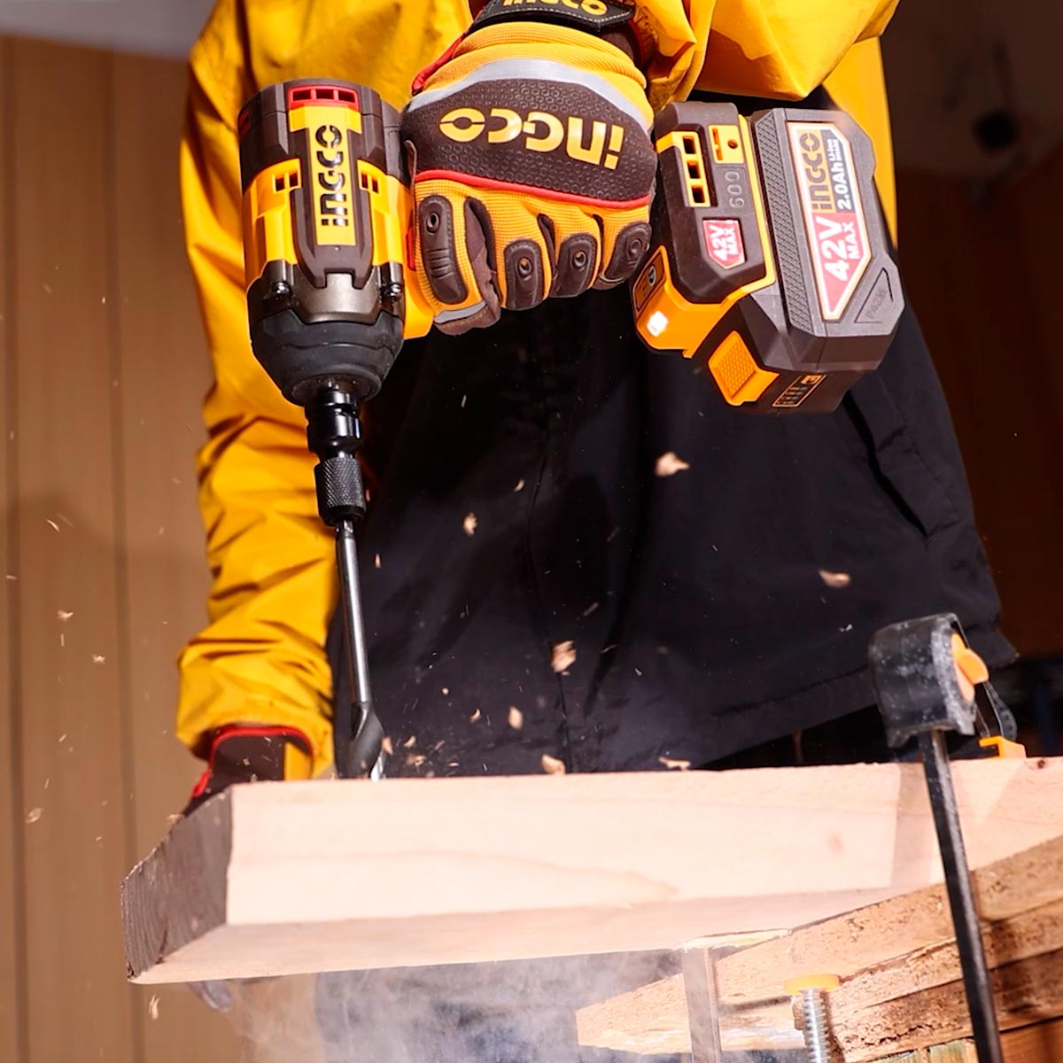Επαγγελματικό κρουστικό μπουλονόκλειδο μπαταρίας 42V σχεδιασμένο για απαιτητικές εργασίες σύσφιξης και απεγκλωβισμού. Το brushless μοτέρ αποδίδει υψηλή ισχύ με μειωμένη φθορά, ενώ οι τρεις ταχύτητες και τα επίπεδα κρούσης προσφέρουν ακρίβεια και έλεγχο. Η εργονομική κατασκευή, ο LED φωτισμός και η ένδειξη κατάστασης μπαταρίας εξασφαλίζουν άνετη και αποδοτική εργασία σε συνεργείο και εργοτάξιο.