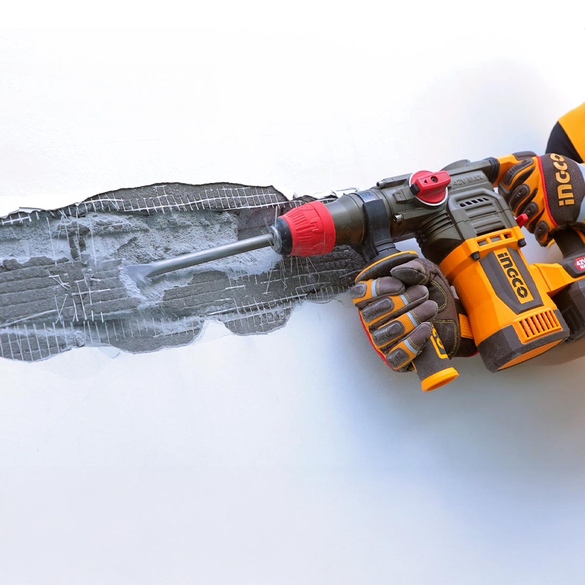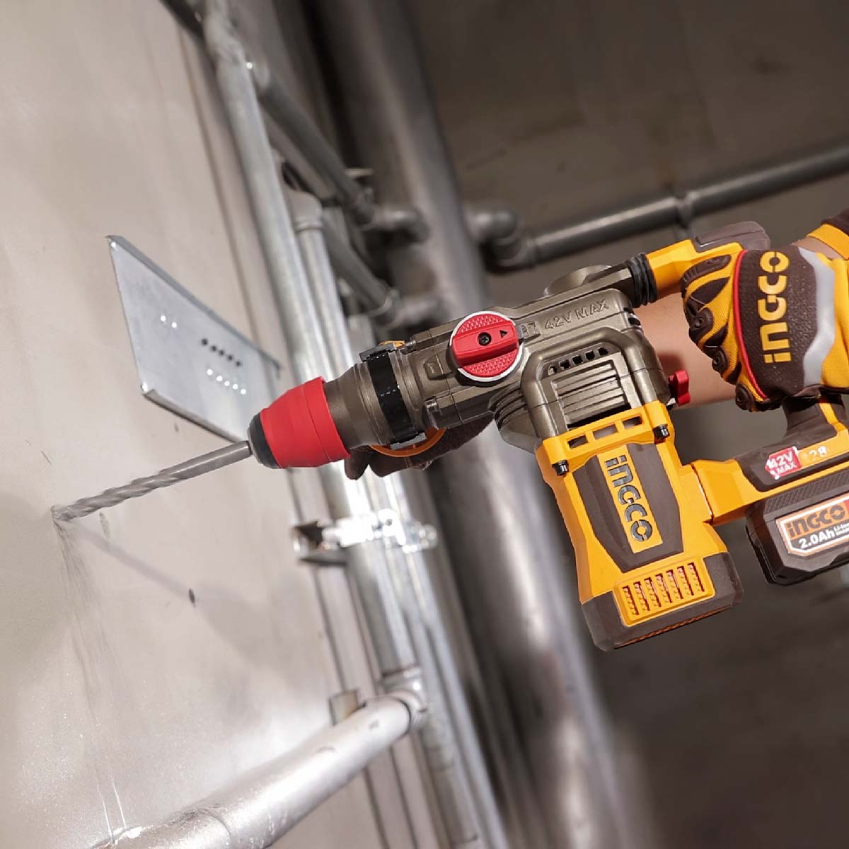 Επαγγελματικό περιστροφικό κρουστικό πιστολέτο μπαταρίας 42V σχεδιασμένο για απαιτητικές εφαρμογές σε μπετόν, πέτρα και δομικά υλικά. Η κρουστική ισχύς 4.5J και το brushless μοτέρ προσφέρουν υψηλή απόδοση και αντοχή, ενώ η αντικραδασμική πίσω λαβή μειώνει την καταπόνηση. Με 3 λειτουργίες και υποδοχή SDS plus, καλύπτει πλήρως εργασίες διάτρησης και σκαπτικού σε εργοτάξιο και συνεργείο.
