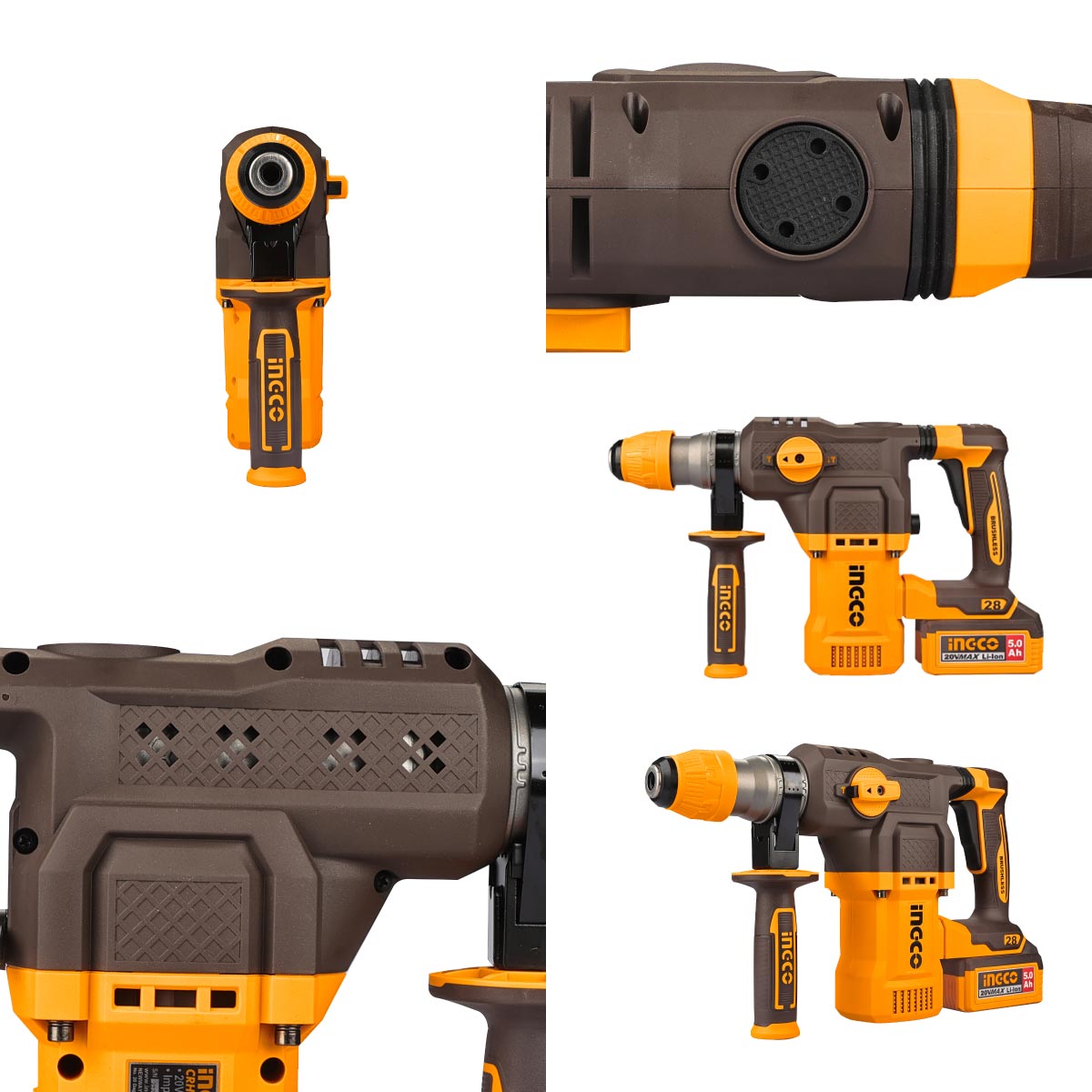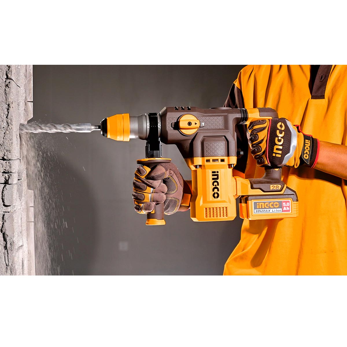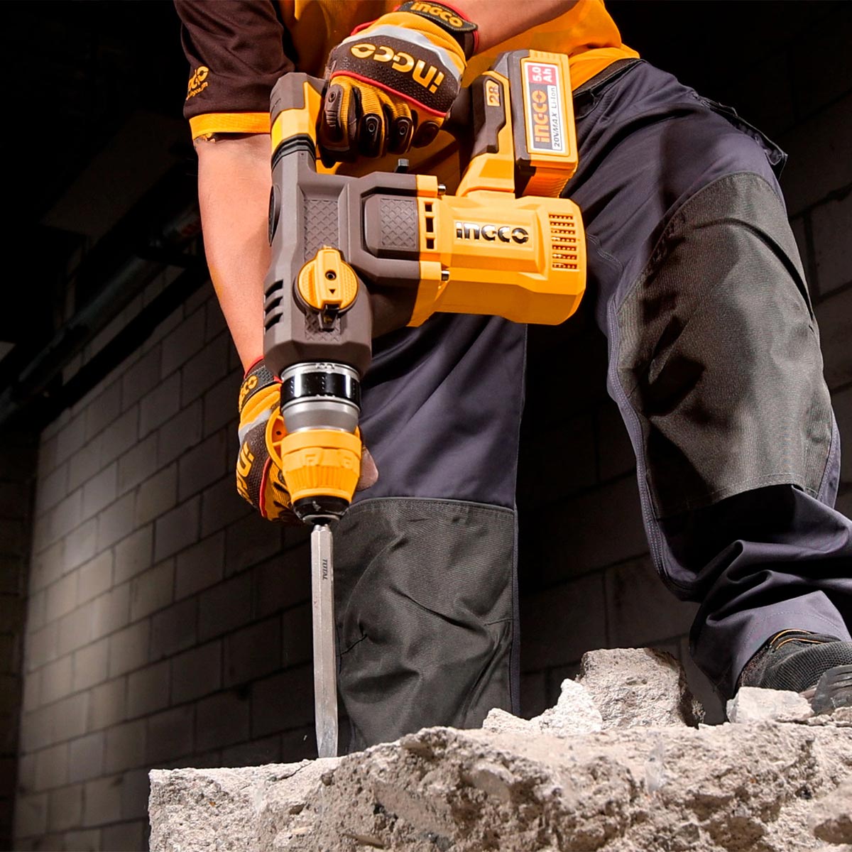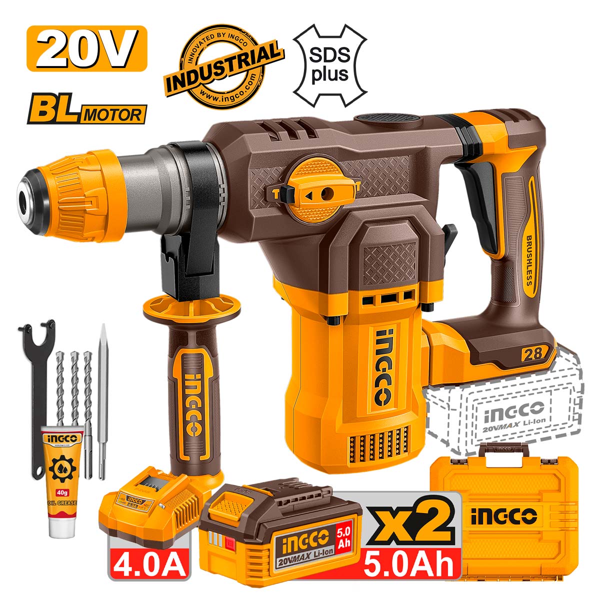 Τάση 20V, ταχύτητα χωρίς φορτίο 0-930 rpm, κρούσεις 0-4400 bpm, υποδοχή SDS Plus, LED ένδειξη μπαταρίας, κρουστική ισχύς 4.5J, αντικραδασμική πίσω λαβή, brushless motor χωρίς καρβουνάκια, 3 λειτουργίες (διάτρηση με κρούση, διάτρηση χωρίς κρούση, σκαπτικό), δυνατότητα τρυπήματος σε μπετόν έως 28mm, ατσάλι έως 13mm, ξύλο έως 40mm.