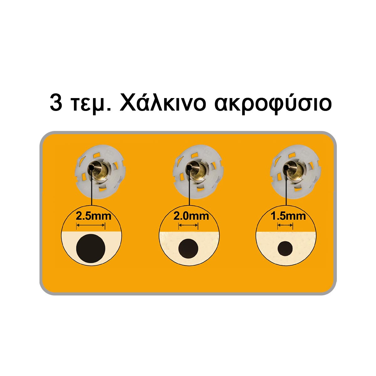2 τεμ. χάλκινα ακροφύσια 1.5mm & 2.5mm, 1 τεμ. ακροφύσιο 2mm προεγκατεστημένο, 1 τεμ. δοχείο μετρητή πυκνότητας, 1 τεμ. βελόνα καθαρισμού μπεκ, 1 τεμ. ακροφύσιο φυσητήρα σκόνης