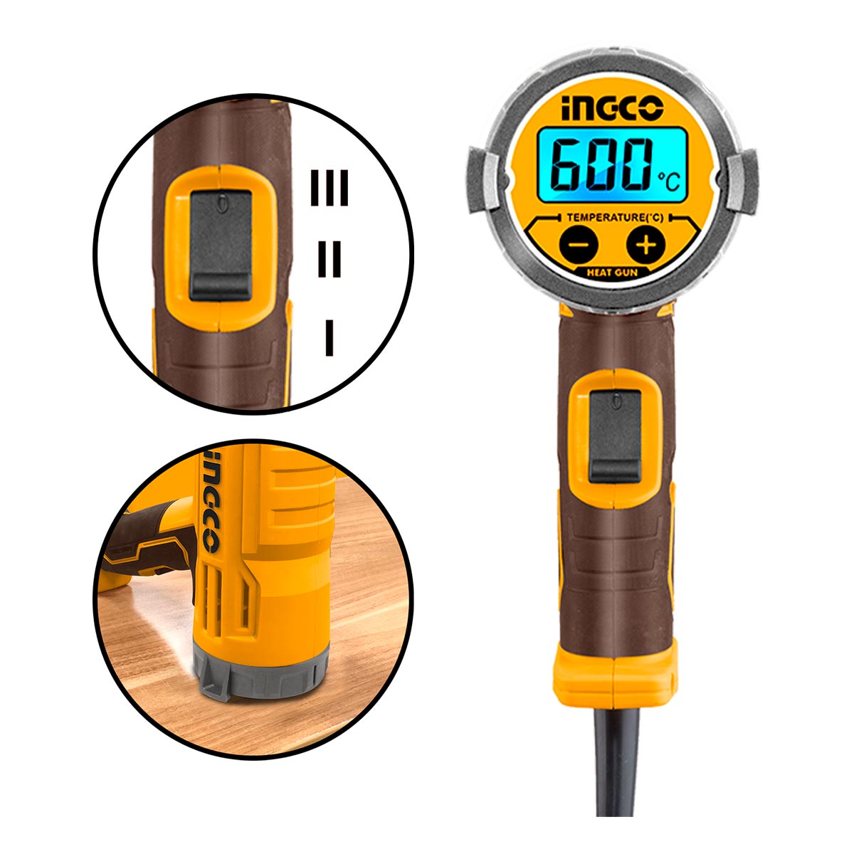 Επαγγελματικό πιστόλι θερμού αέρα 2000W σχεδιασμένο για αφαίρεση χρωμάτων, θερμοσυρρίκνωση, λύγισμα πλαστικών και γενικές θερμικές εφαρμογές. Η LCD οθόνη επιτρέπει ακριβή έλεγχο της θερμοκρασίας, ενώ οι πολλαπλές ρυθμίσεις θερμοκρασίας και ροής αέρα προσφέρουν ασφαλή χρήση ακόμα και σε ευαίσθητες επιφάνειες.