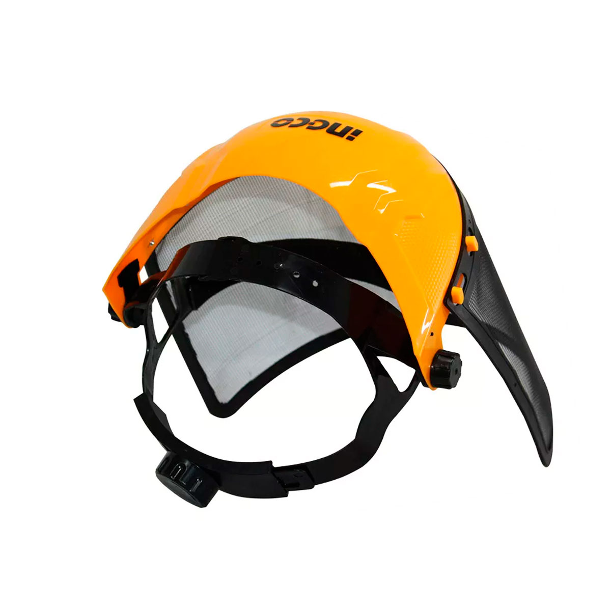 Είναι εξοπλισμένη με προστατευτικό μετώπου και ρυθμιζόμενο κάλυμμα κεφαλής για σωστή εφαρμογή σε διαφορετικά μεγέθη. Κατάλληλη για χρήση σε κηπουρικές εργασίες, κοπή χόρτων, θαμνοκοπτικά, αγροτικές εφαρμογές και DIY εργασίες.
