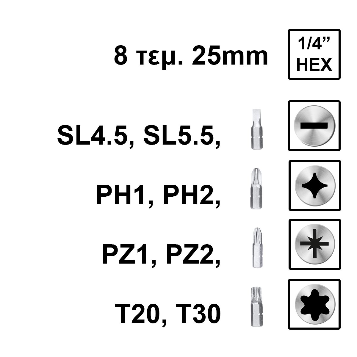 8 μύτες κατσαβιδιού 25mm: