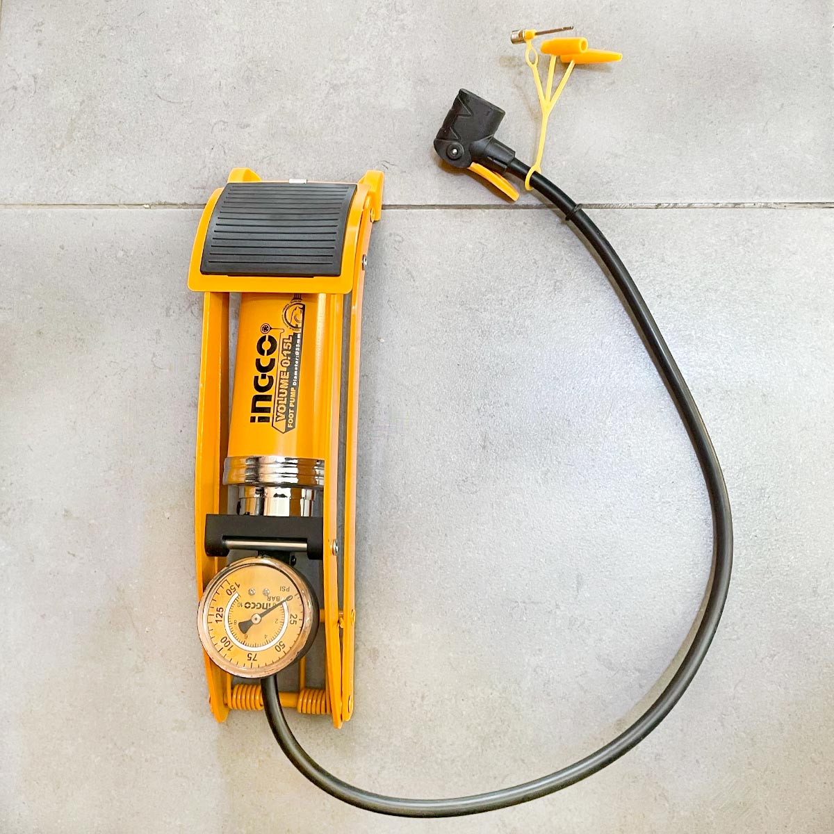 Τρόμπα αέρος ποδιού 120 PSI, Ανθεκτικός σωλήνας υψηλής πίεσης 60cm, Ενσωματωμένο μανόμετρο.