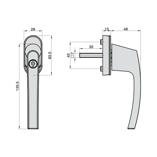 1 x Λαβή παραθύρου FG 505 | 2 x Κλειδιά