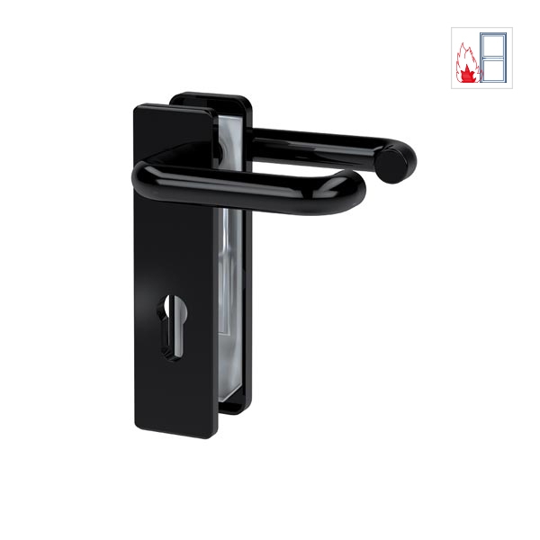 Η πυράντοχη λαβή ασφαλείας ZT/FS 2150 με γωνιακή κοντή πλάκα αποτελεί αξιόπιστη επιλογή για πόρτες πυρασφάλειας σε επαγγελματικούς και δημόσιους χώρους. Διαθέτει λαβές σε σχήμα U και χαλύβδινο πυρήνα, ο οποίος διατηρεί τη λειτουργικότητα ακόμη και σε θερμοκρασίες άνω των 1000°C.