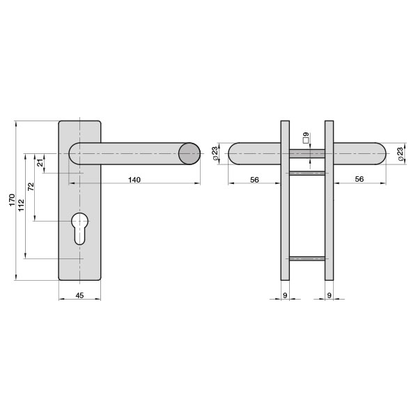 Μοντέλο: ZT/FS 2150 | Τύπος: Πυράντοχη λαβή πόρτας ασφαλείας | Σχήμα λαβής: U | Πλάκα: Κοντή, γωνιακή | Πυρήνας: Χαλύβδινος | Ρουλεμάν: Σταθερή / περιστρεφόμενη λαβή με έδρανο | Απόσταση: 72 mm | Τετράγωνος άξονας: 9 mm | Πάχος πόρτας: 44–66 mm | Υλικό: Μαύρο πλαστικό | Πιστοποίηση: DIN 18273