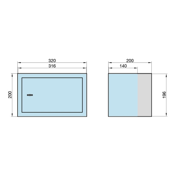 εξωτερικές διαστάσεις: ύψος 200 mm, πλάτος 320 mm, βάθος 200 mm