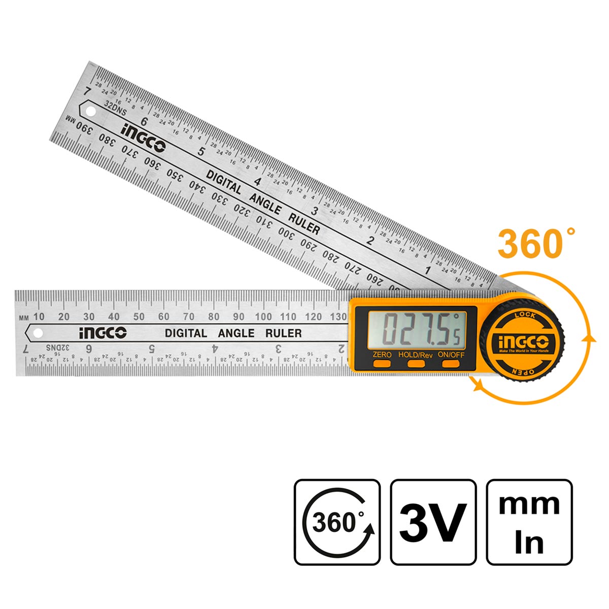 Ψηφιακός γωνιακός χάρακας αλουμινίου υψηλής ακρίβειας με εύρος μέτρησης 0–360°, διπλή κλίμακα (mm/inch) και εύκολη ανάγνωση. Ιδανικός για ξυλουργούς, τεχνίτες και επαγγελματική χρήση.