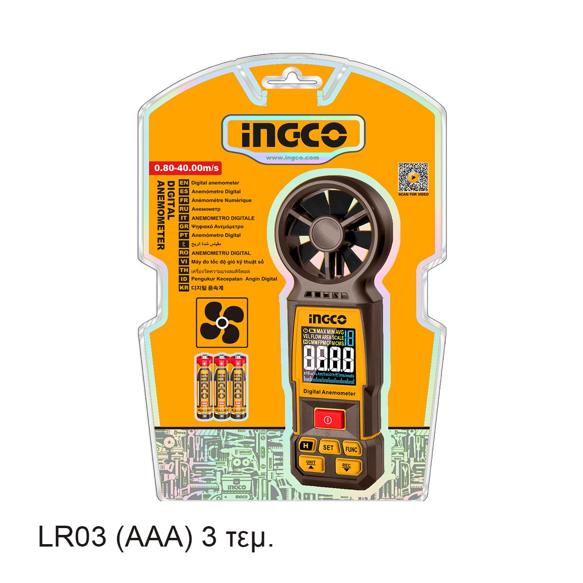 1 x ψηφιακό ανεμόμετρο, 3 x μπαταρίες AAA 1.5V