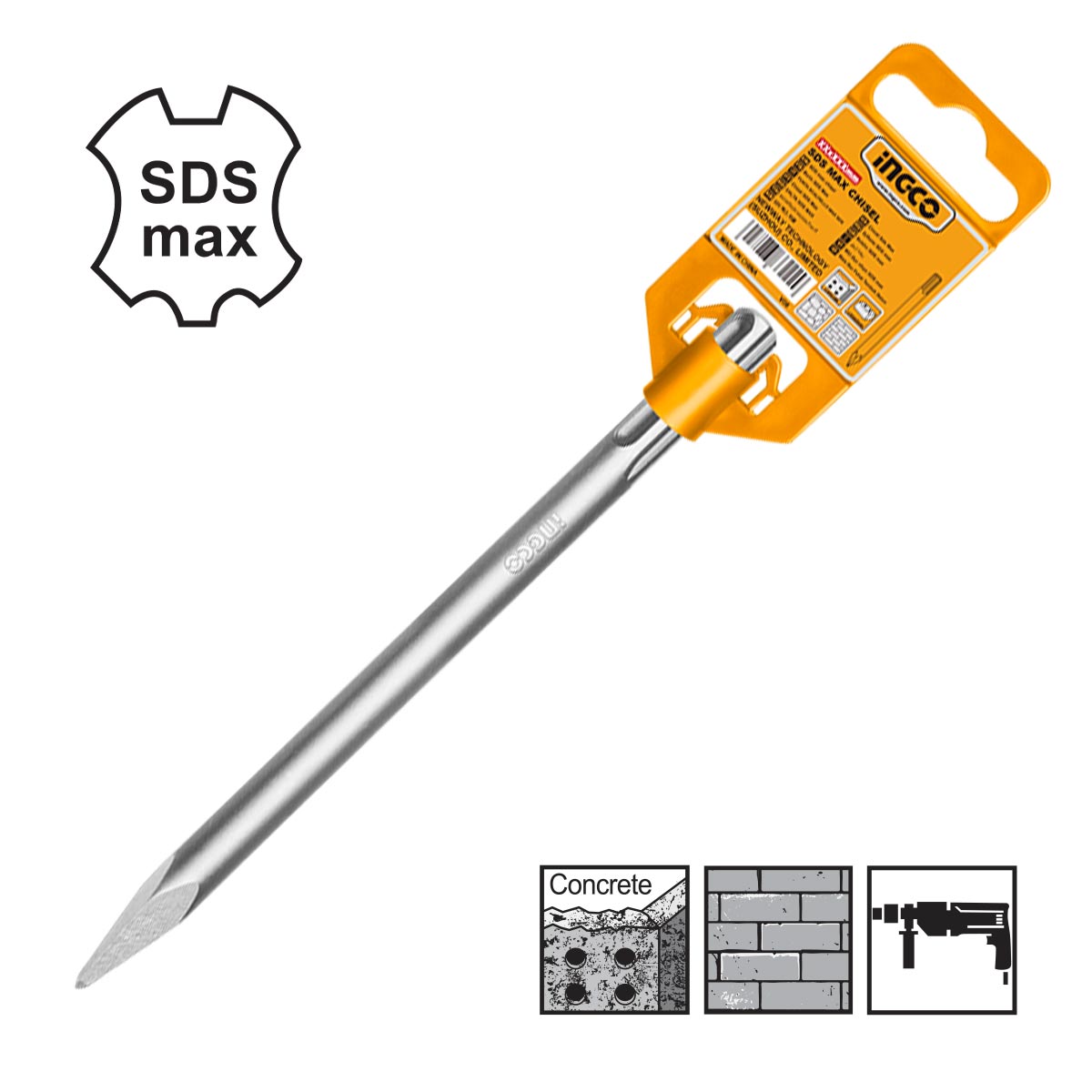 Ανθεκτικό βελόνι κατεδάφισης με υποδοχή SDS Max, κατάλληλο για επαγγελματικά πιστολέτα κατεδάφισης. Ιδανικό για διάτρηση και κατεδάφιση σε σκυρόδεμα και τούβλο, προσφέροντας υψηλή αντοχή και αποτελεσματική απόδοση. Συμβατό με όλα τα εργαλεία που διαθέτουν υποδοχή SDS Max.