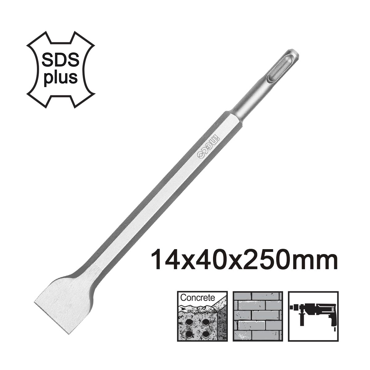 ⚙️ Χαρακτηριστικά: Διαστάσεις 14x40x250mm, Υποδοχή SDS Plus, Πλατύ καλέμι για αφαίρεση υλικού, Κατάλληλο για σκυρόδεμα και τούβλο, Συμβατό με όλα τα πιστολέτα SDS Plus.